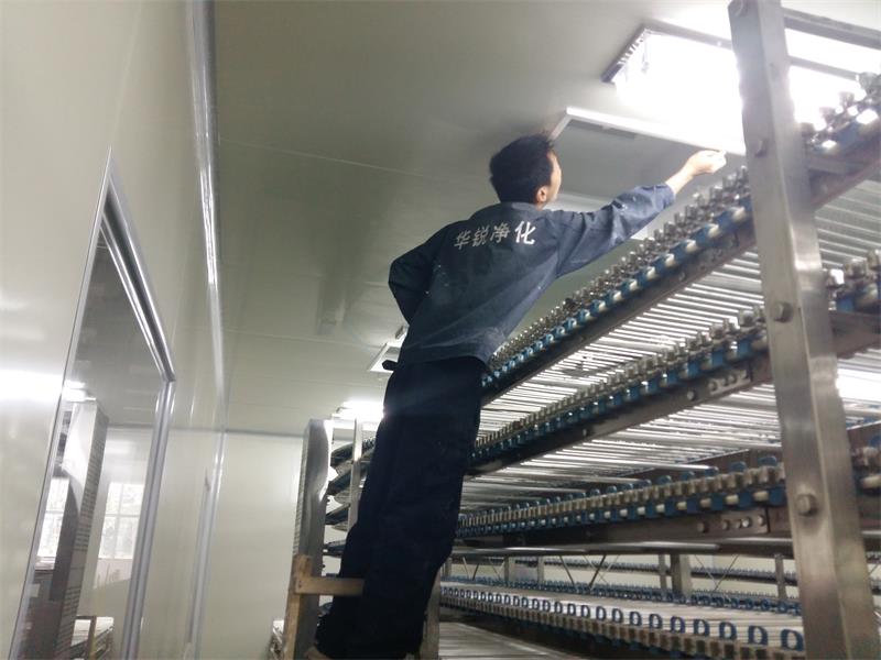 凈化燈的安裝應(yīng)與吊頂板的吊掛同步進(jìn)行,凈化燈的安裝應(yīng)注意排列均勻、美觀,保證重點(diǎn)操作面的光照強(qiáng)度;根據(jù)設(shè)計(jì)圖紙,在頂板上劃出安裝位置,若發(fā)現(xiàn)設(shè)計(jì)位置不合適,應(yīng)會(huì)同設(shè)計(jì)人員做適當(dāng)調(diào)整;根據(jù)燈的材質(zhì)、重量,選定連接方法,凈化防爆燈比較重,需用貫通螺栓(組成:頭部和螺桿組成)把燈和頂板連接起來(lái),連接后應(yīng)做好貫通螺栓(組成:頭部和螺桿組成)周邊的密封,以防塵土從該縫隙進(jìn)入GMP車間;不管是哪一種燈,在安裝時(shí)做一支架支撐是省工、省力的好方法,先用支架把燈頂?shù)桨惭b位置,再用螺栓或鉚釘連接,支架高度應(yīng)略高于吊頂標(biāo)高;在頂板上表面空的位置處隨即安裝接線盒,把凈化燈上所附帶的電線套上絕緣(insulated)軟管后一并穿過(guò)該孔進(jìn)入上部的接線盒內(nèi),以待接線,然后上下用密封膠密封該穿線孔。無(wú)塵室裝修將一定空間范圍內(nèi)之空氣中的微粒子、有害空氣、細(xì)菌等之污染物排除,并將室內(nèi)之溫度、潔凈度、室內(nèi)壓力、氣流速度與氣流分布、噪音振動(dòng)及照明、靜電控制在某一需求范圍內(nèi),而所給予特別設(shè)計(jì)之房間。
